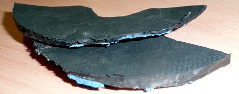 修理に使用しているアウトソール用ゴム(YGKタフデン)はまだ10回以上修理が出来るだけの量が残っています。(修理日:8月24日) |