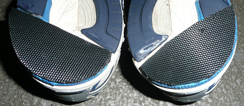 ジョギングシューズはアウトソールの摩耗が一番早いのですが、それにしても早すぎです。原因はボクのランニングフォームが悪いせいでしょうか? 体重にも問題があるのかもしれません。このまま使い続けると、摩耗がミッドソールに及ぶことは必至です。