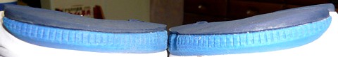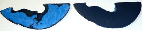 | 型紙が悪いからか、切り取り方のせいか、ハッキリ言って不細工(特に抉れ部分の加工が難しい)ですが、全てがトーシローの手作業ですから仕方ありません。でも実際に使う時は見えない場所ですから良しとしましょう。 |